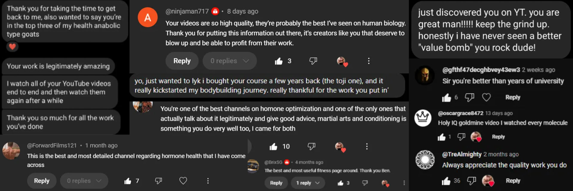 Many fitness brands focus narrowly on training, and perhaps nutrition. But my viewers know that there is much more to peak health and performance than that. I tackle the challenge from all angles: sleep, circadian health, light environment, micronutrients, gut health, supplementation, training, recovery, stress management, mitigating environmental toxins, and so much more. No stone left unturned.